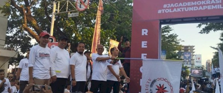Makassar – Diprakarsai oleh Yayasan Anak Rakyat Indonesia (YARI) dan Aliansi Demokrasi Rakyat Indonesia (ALDERA) Gerak Jalan Sehat Peringatan 25 Tahun Reformasi.
