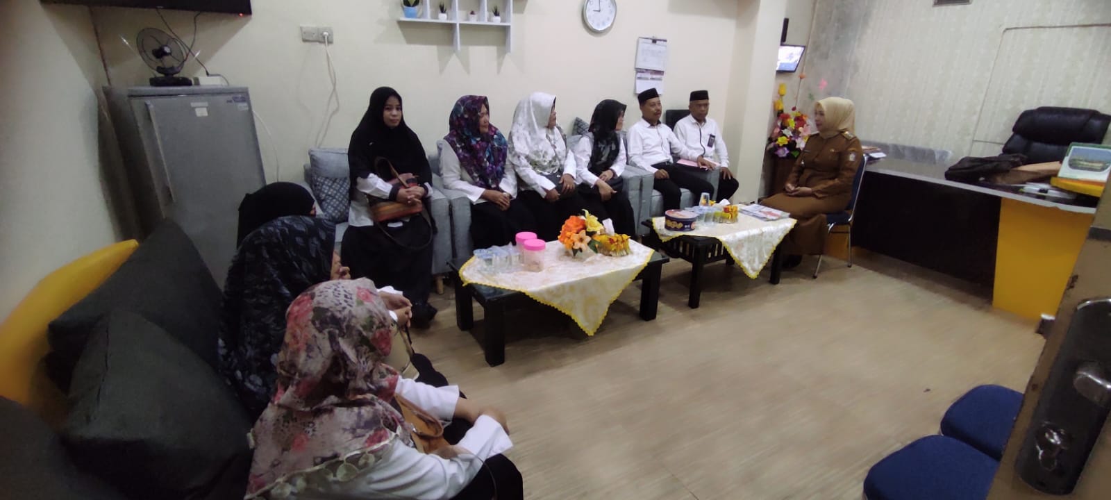 MAKASSAR — Kunjungan kepala kantor KUA Kecamatan Wajo beserta stafnya ke kantor kecamatan Wajo mendapat sambutan hangat dari Camat Wajo, Hamna Faisal.